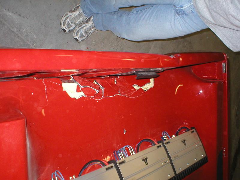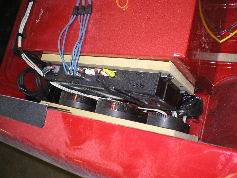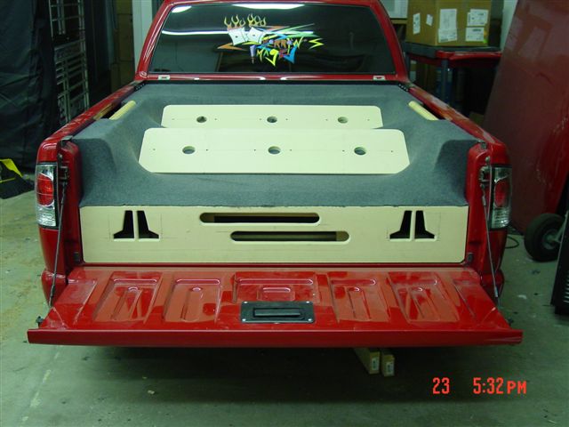 CD player...4" coax in the custom fiberglass kicks.. stinger battery.. subs are coming