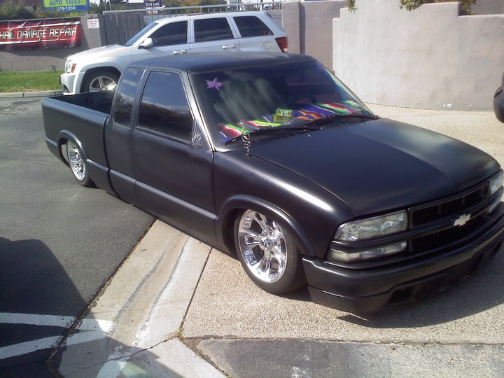 CUSTOM BULIT 4LINK USING 2" SOLID ROUND TUBING W/ ENERGY SUSPENSION BUSHINGS AND SUPER PIVOT BUSHINGS. SD.COM GEN2 NOTCH - CUT AND CUSTOMIZED TO USE THE SD.COM S10 DIFFERENTIAL BRACKET AND LAY FRAME ON DUBS. IM FLOATING ON 2600LBS CONITECHS ALL FOUR CORNERS. 1/2"GC VALVES FOR LIFT, 3/8" FOR DUMP. PUMPED VIAIR 450'S INTO A 5GAL CHROME TANK AND RUNNING 1/2" LINE.