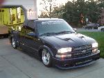 Stillen Front Airdam W/ 4 Fog Lights; Clear Corner Lenses; Street Scene Brushed Aluminum Speed Grills; Billet Chevrolet Bowtie; Cervinis Ram Air Hood; Trenz Billet Antenna; Street Scene Super Sport Mirrors; Smoothed and Body-Color Painted Door Handles and wiper cowl; Clear Third Brake Light; Gaylords Hard Tonneau Cover; Wade Bed Caps; Bed Rug Carpet Bedliner; Shaved Tailgate W/ Belltech Handle Relocation Kit; Shaved Taillights; Custom Molded Roll Pan With Toyota Supra Taillights