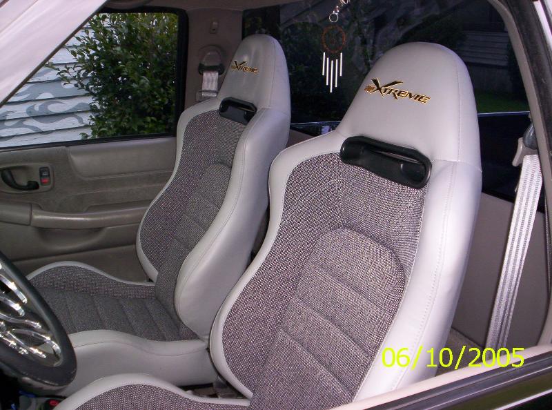 One off custom racing seats with grey vinyl an black/grey tweed with Xtreme stiched in head rest