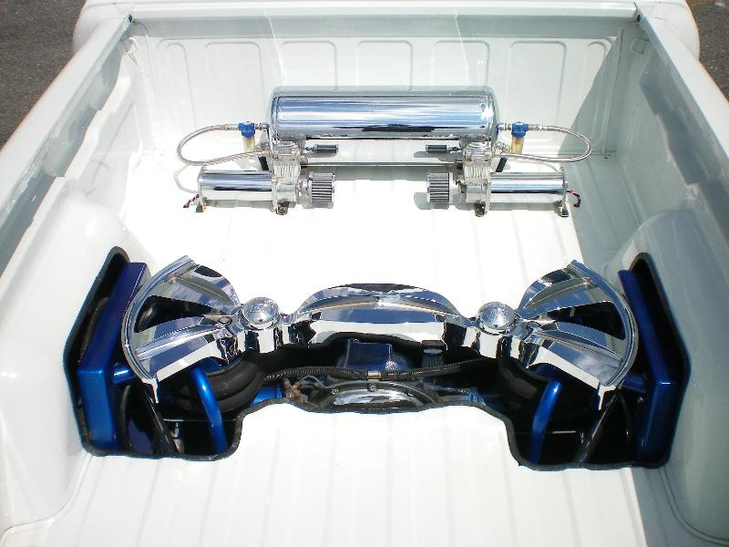 Bagged 1/2inch, Parker valves, chrome 4-link, 2 viairs, chrome 5 gallon tank, chrome shocks, drop spindles