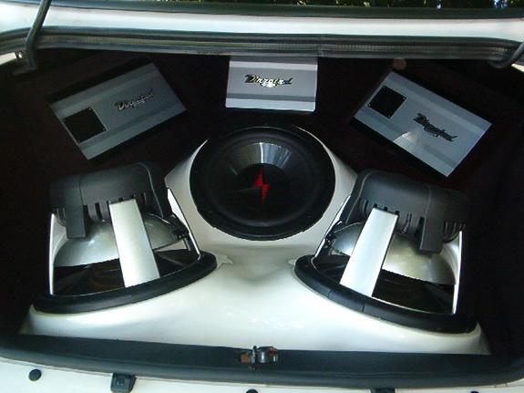 FULLY FIBERGLASSED TRUNK, 3 PPI 12'S, 2 DIRECTED 1100D'S AND A DIRECTED 250X4. O YEA AND A T.V. IN THE TRUNK LID. AND A 275 AMP ALT.