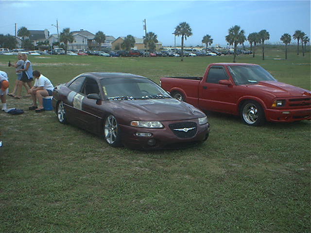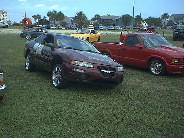 *Clarion TV Headunit *Clarion 6 disc changer (in glove box) *PS2 *2 PBX 12s *Audiobahn amp *Audiobahn mids and highs *Tsunami fuse blocks *All fiberglass speakerbox and trunk pan painted to match car with flames matching on trunk pan *ALL STEREO WORK DONE BY ScrapeN Customs (www.2scrape.com)