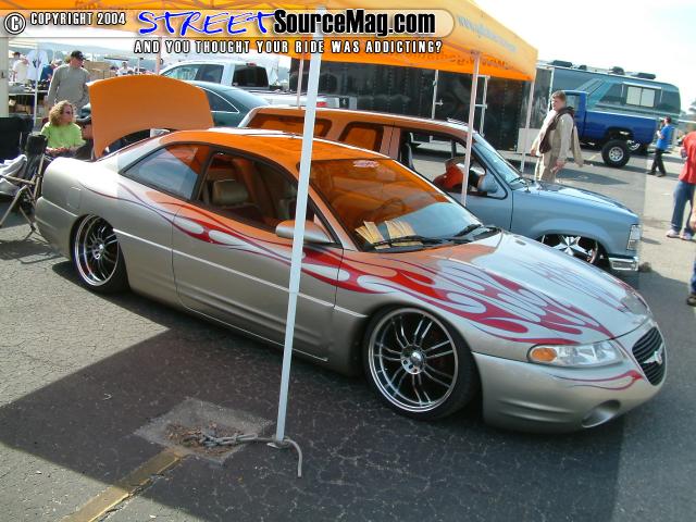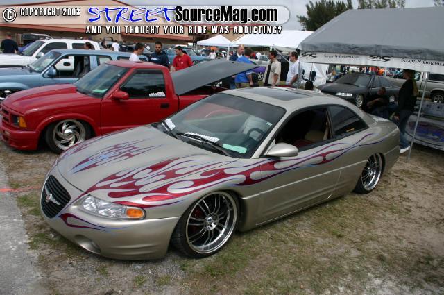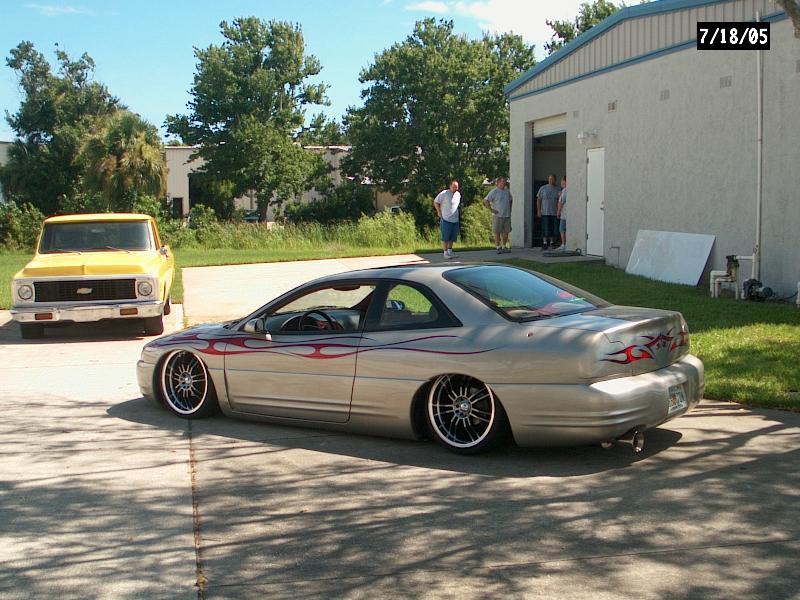 *Shaved emblems/logos *Frenched antenna *Shaved the fast and furious supra style wing *Shaved front turn signals *Wired headlights to blink *Body panels molded onto car *Shaved third brake light *Shaved stock wing *Removed plastic off trunk lid and replaced with steel *Shaved trunk lock *Shaved backup lights *Shaved body line around tag box *Shaved taillights replaced with custom made flame taillights *Custom mixed silver base with House of Kolor Candy Brandy Wine Flames *Flames hand striped in blue *Graphics run in the jams *ALL BODY & PAINT WORK DONE BY Volusia County Customs(Todd Fischer & Doug Lafland) *Painted brake calipers
