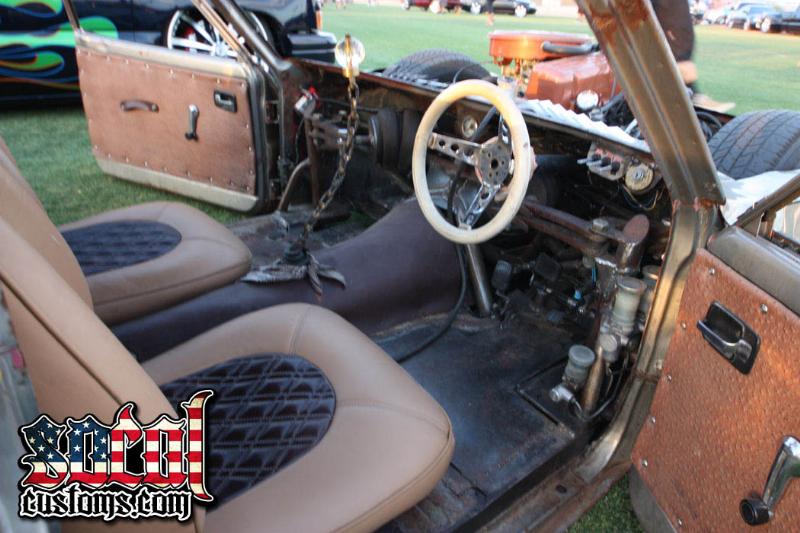 RHD brake and clutch cylinder in cab and catilevered, custom leather seats, leather patch pannles, door pull straps, and trans tunnle. along with full custom steering column. slam RE7's for a dash.