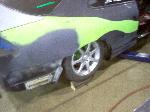 Tubular arms up front with a lot cut out. EAI cans Cantilever setup up in the backseat with firestone 2600s