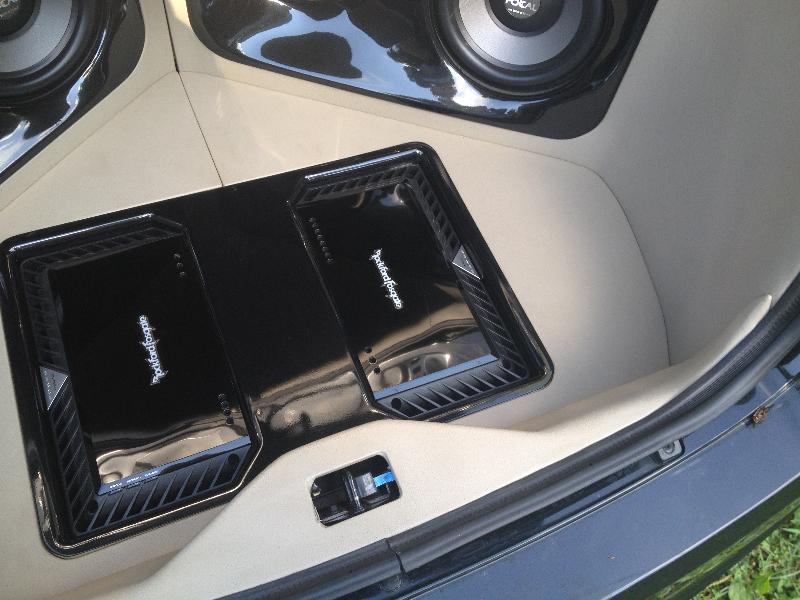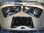 focal polyglass mids and highs.Rockford fosgate power amplifiers.4 ten inch focal subwoofers.Custom door panels and trunk area