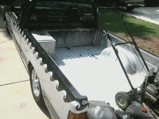 bagged lays frame 4link rear custom lower control arms in front front bagged to fit 22s rear not can fit 19s with no holes in the bed possible bodydrop in the future...