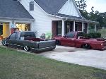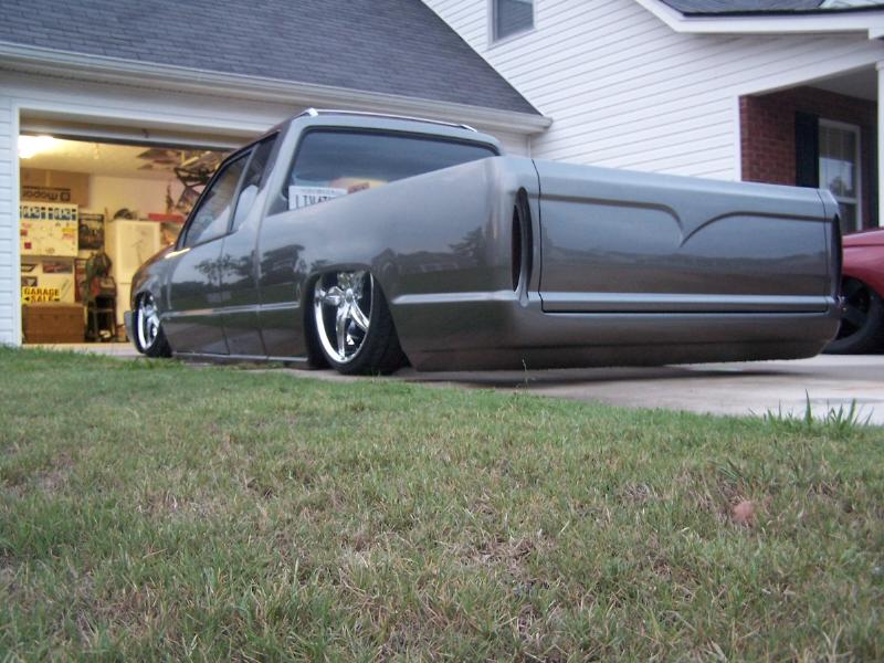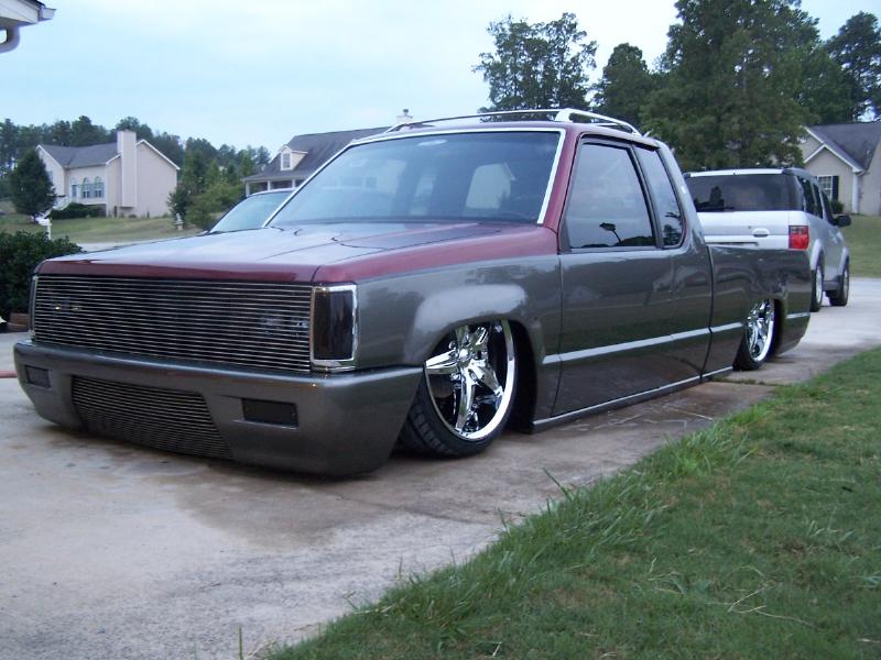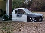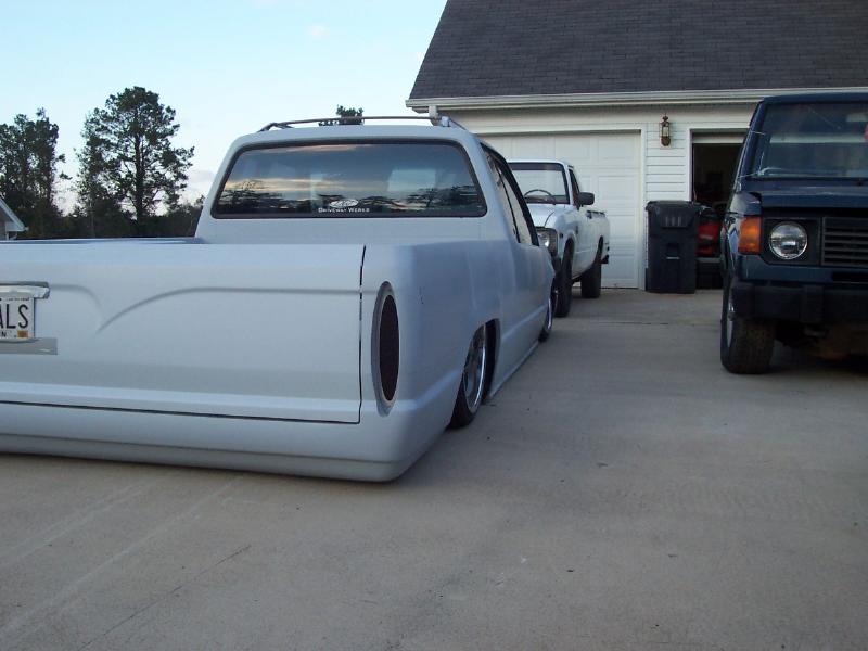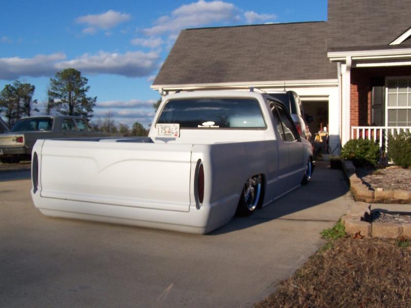 4.5 body drop cut 1 1/2 off the rockers stock ROOF RACK OFF A 87 RAIDER hood ,lowered the motor mounts 1/2 sheet metal bed shaved gas door sir micheals roll pan 95 mighty max bumper phantom grille lower bumper insert hot match gas cap shaved handles and tail gate lights