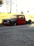 Cando Cups cut down, 2 inch spindles, pie cut upper control arms. Rear has custom built 4 link by myself, c notch, custom bridge, bags on bottom bars. 5 lugg conversion, rebuilt x members and long bed conversion. SOLD!