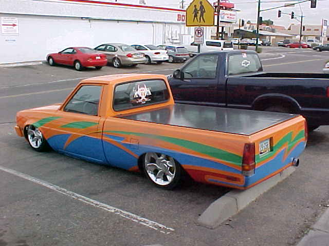 FULL CUSTOM PAINT GOST FLAMES IN GRAPHICS SHAVED DOORS SHAVED TAILGATE, AND A BILLIT GRILL.