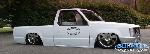 white primer with migthy max front end, billet insert in grille and bumper, shaved doorhandles and locks, cal combo, taillight fillers, and caddy lights, mirrors shaved and finally body droped 3 3/4" lays flat rockers, full 6" flatfloored sheetmetal bed shaved gas door and bed seams, suicide doors, and black rag top