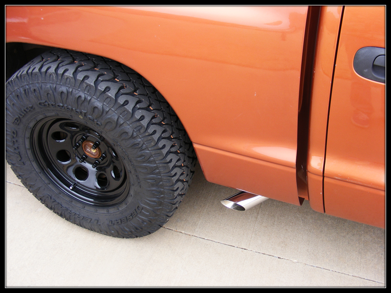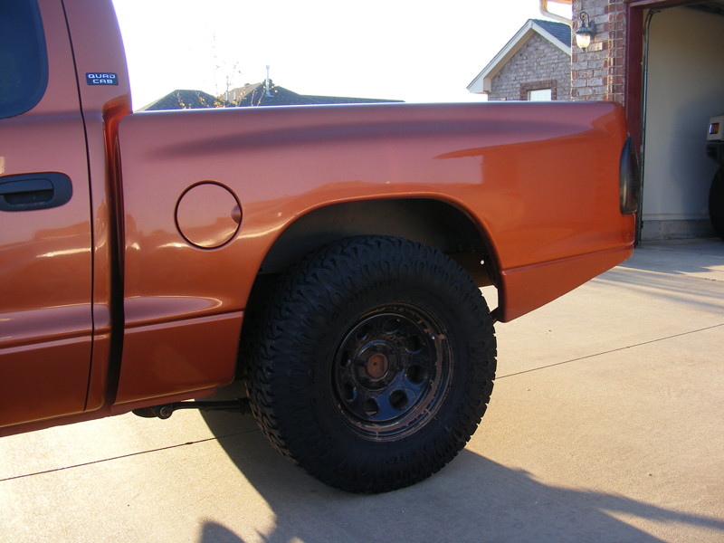 cut rear rockers, blacked out tail lights, tubular front bumper w/ skid plate