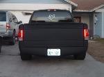 flat black with shaved doors,roll pan, tailgate,and relocted tailgate latch on the inside of tailgate...