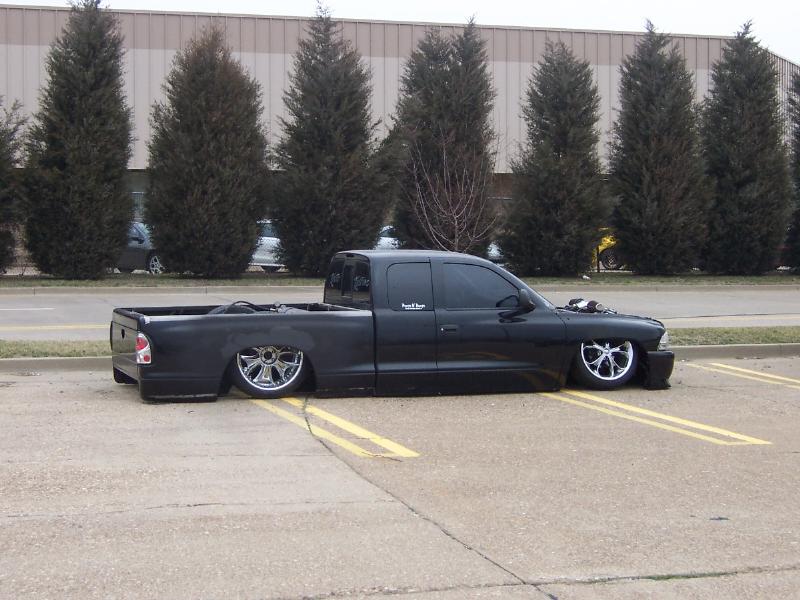 3 3/4" Stock Floor Body drop, suicide hood suicide doors(under way real soon), Cervinis ram air hood, stillen grill shell and bumper cover(oops dragging body will break things)OH well. Gemtop bed cover(wont' fit any more), z'd front clip 2"