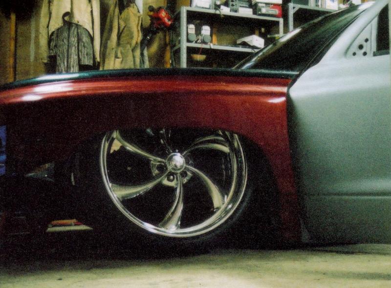 2600 Firestone bags, Pete & Jakes 4 link, 12 gallon tank, 3.5" "stock floor" body drop and a little channeling for some extra drop, no pinch-lays hard rocker, Ford 9 inch rearend shortend by Moser with Wilwood disk brakes.All work performed by myself and Insane Kustomz, Paris Tn.