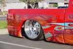 Body dropped 2-1/2 inches by Master Image Customs, fully adjustable Firestone air bags front and rear. Rear suspension constists of a narrowed Currie-built Ford 9-inch rear end, heavy duty axles, solid threaded bar stock triangualted four-link, fuel cell located in rear frame section beneath bed.