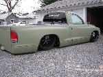 Stock Floor Bodydropped, frame from firewall back, Shaved doors, fuel door, tailgate handle, antennea, 3rd brake light, side mirrors, roll pan with center license plate