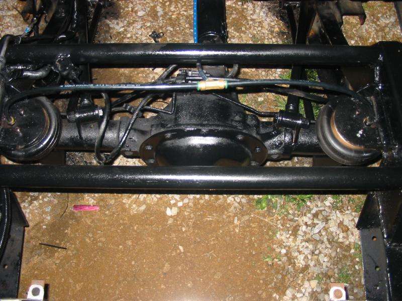 shaved door handles,taligate, gasdoor.Cowl induction hood, shaved bumper smooth roll pan, lexan back window with license insert. Chrome front valance.Winter 2002 stock floor body drop in progress, triangular 4-link already in, starting to cut..wil update with pics soon !!