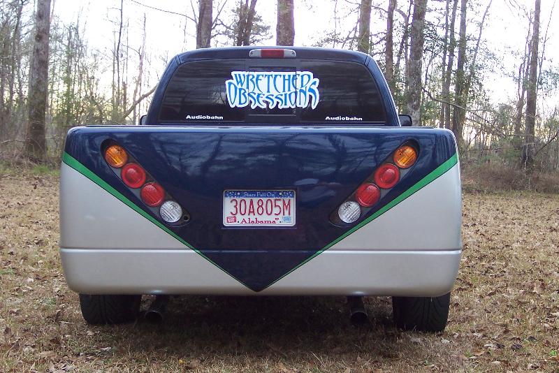 Toyota tailights, rear skin, shaved handles, tailights, and antenna, custom paint job, and custom front bumper, grille and hood.