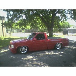 dodge red,shaved passenger door,billet antenna,fiberglass bed cover