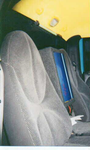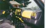 GREEN STROBS IN AIR VENTS, AND HEAD LIGHTS & TAIL LIGHTS. AIR VENTS ARE PAINTED YELLOW ALONG WITH THE ASH TRAY,GREEN NEON (LAVA TUBES)ALONG BACK WINDOW.