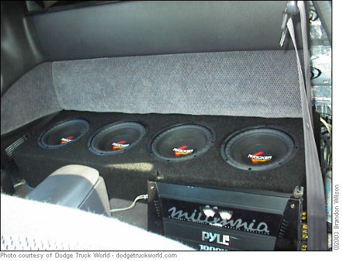 4 10" kicker comp vr's, 1000 watt pyle amp, jvc head unit, infinity kappa mids, and LOTS OF DYNOMAT