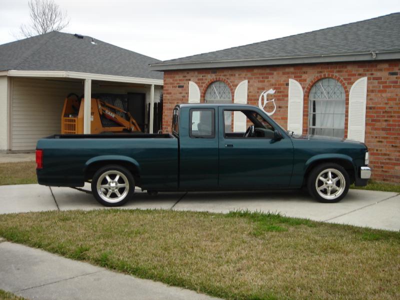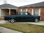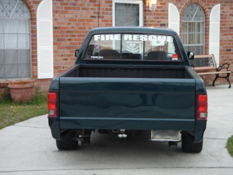 Shaved tailgate handle, stake holes, and third brake light. Billet shortie antenna, Sir Micheals roll pan, and truck was sprayed with PPG Emerald Pearl Coat.