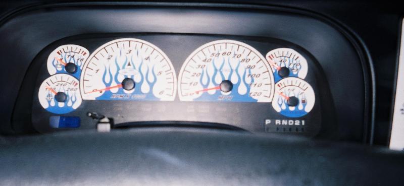 White face acpanel, headlight panel,White face blue flame gauges, billet a/c knobs