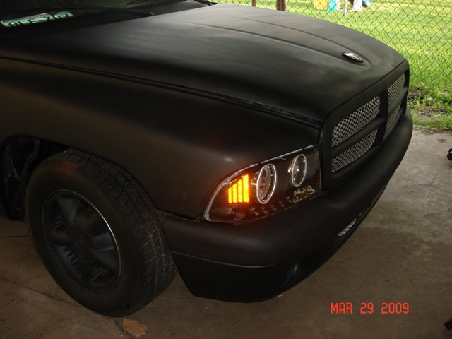 shaved doors, tailgate and molded rollpan, dual halo headlights, sport mirrors, all primered black for now; soon to be shaved: gas door, antenna, emblems and i'm debating on the taillights