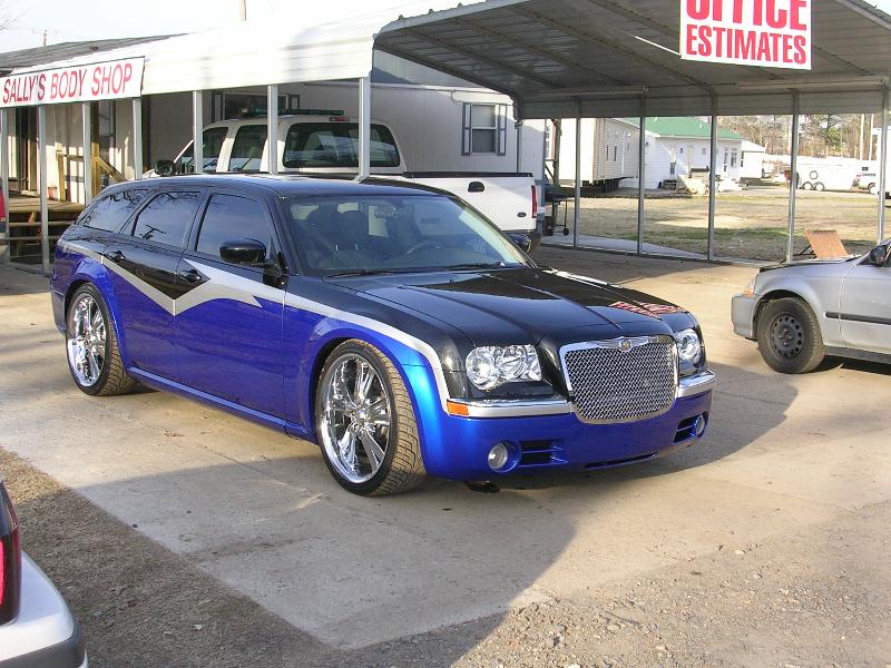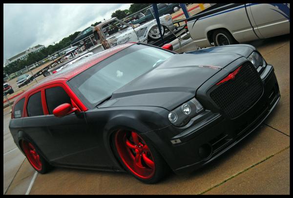2TONE PAINT CANDY REDW/BASSBAOTFLAKES AND FLATBLACK,300C FRONT CLIP,SHAVED REAR WIPER,SHAVED DOOR HANDLES POWDER COATED GRILLE,SRT8 FRONT BUMPER AND 2"COWL HOOD, BLACKED OUT HEADLAMPS