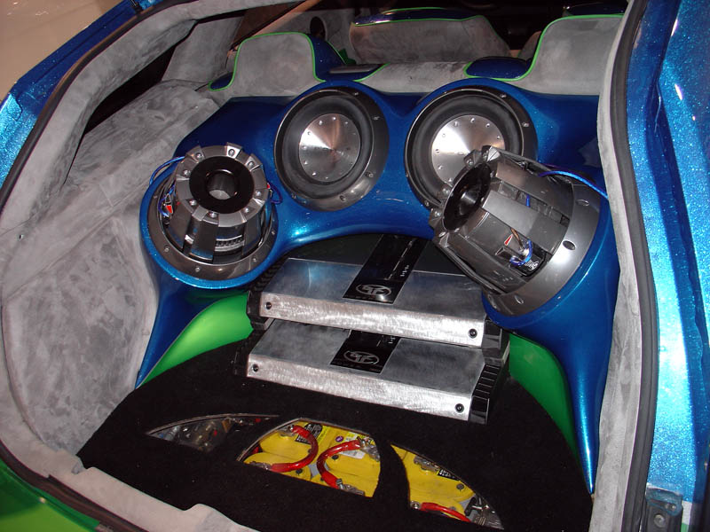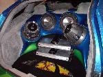SOLD....4 Rockford Fosgate T1 10's, 3 sets of t162s Rockford Fosgate components,RF t2000.1bd,RF t800.4bd, RF 40 farad capacitor, 90sqft of dead skin, Full Fiberglass enclosure, and trim panels. Pioneer indash CD, DVD,TV trying to find room for some other monitors through out the car