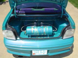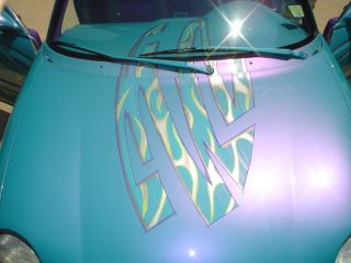 Custom paint and air-brush graphics. Wings West full body kit. Shaved everything. Clear lenses. Flip-Flop trunk lid.