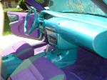Green and Purple tweed with tribal flame inserts on the doors. Custom fiberglassed dash,center console and trunk.