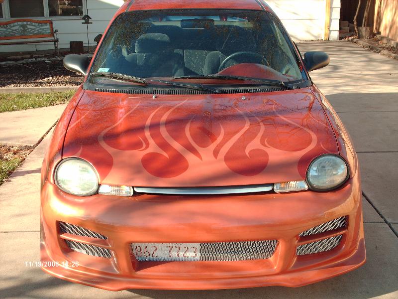 Totaly shaved- R34 bodykit-Terminator 2 wing Custom Orange paint with tribal flames- dual 4inch by 19inch mufflers- blacked out windows