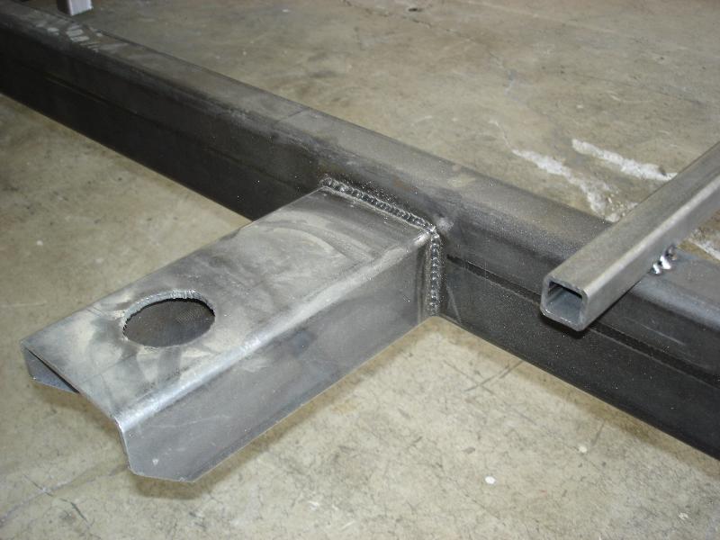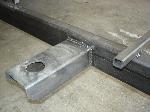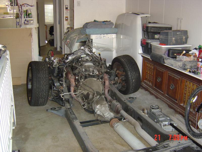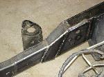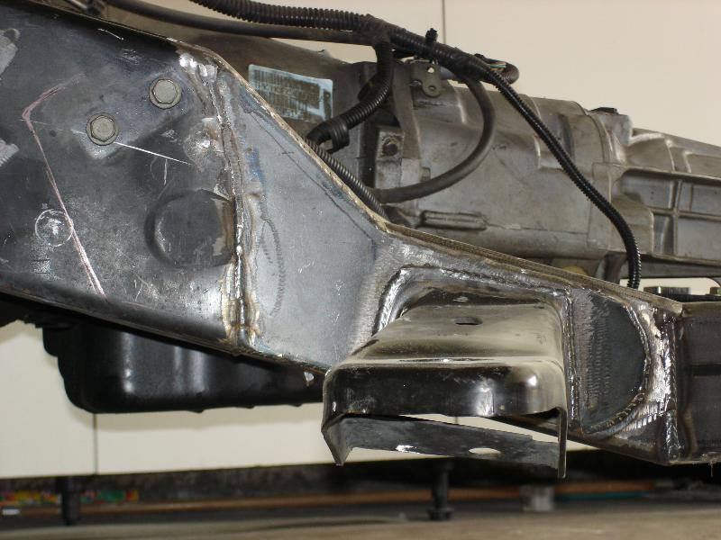 In process of 2 in stockfloor bd with SD tri-4link, z'd 1 inch to lay true frame, modified beltech tranny x member