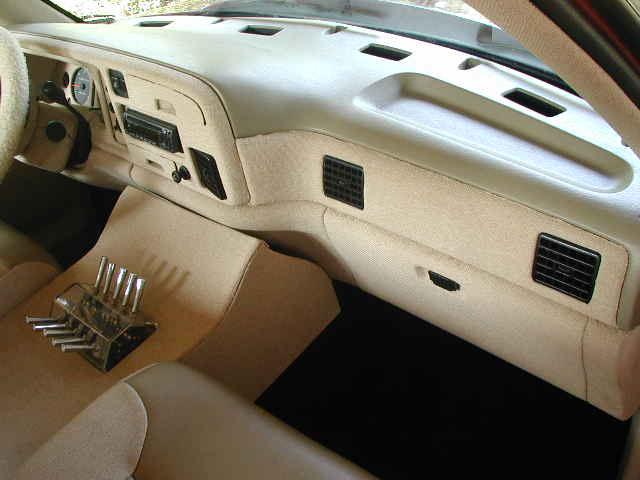 completed covered in cream tweed and vinyl...custom center console w/clear switch box and ram logo