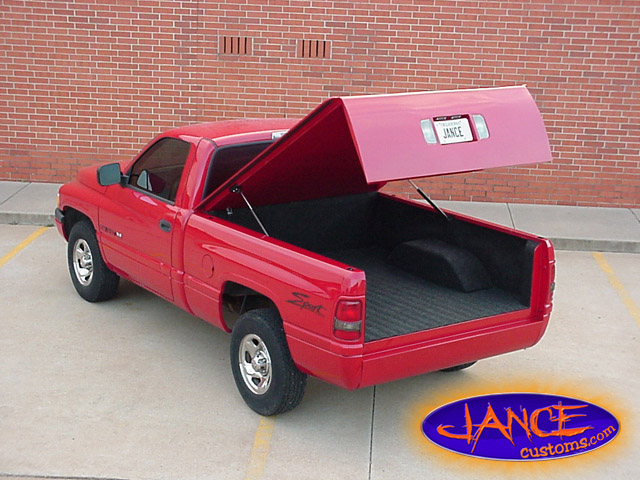 01 Dodge Ram Sport front end upgrade with billet inserts and Dodge Viper grille emblem, sport mirrors, billet antenna, euro taillights, Tonneau Gate Prototype (Tonneau/Tailgate combo, tag, hinged tag bracket, tag lights, C5 Corvette reverse lights, hidden handle under tag) rollpan