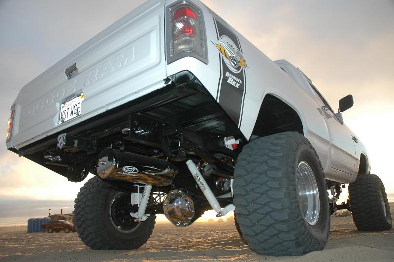 Paint and body was done by Brandon Sisco of Sisco's Customs in Visalia, California, powdercoated Fabtech light bar, three KC Daylighters, everything underneath powder coated by Visalia Powder coating of Visalia California.Cen Cal Distributing onboard air system w/ 5-gallon nine-port air tank, 280C Viair compressor, United Pacific train horn with manual release valve mounted inside of cab