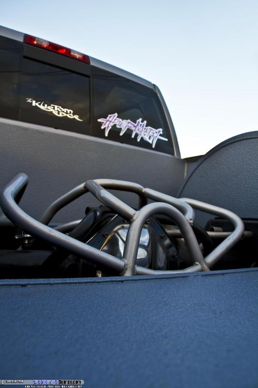 10K HID Kit, Billet Grill & Bumper Inserts, Color Matched Rhino Liner, Color Matched Bumpers & Grill, Shaved; Fuel Door, Sat. Antenna on Roof, Antenna on Fender, Tailgate handle & Rear Emblem, & Tidewater Blue Metallic Paint, '10 HD Clip