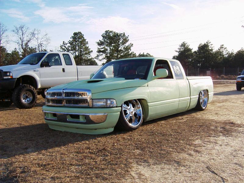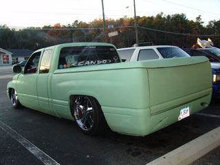 Primmed with HOC, polished flame grill, shaved doors,antenna,stake holes , tailgate, 3rd break light,and rain channels. "Can Do Customs" roll pan, tail light fillers and 2" frenched tribal tail lights. Fiberglass Ram Air hood