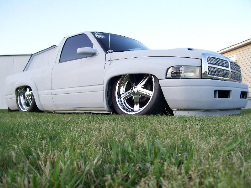 primer, shaved door handles and locks, taillights, molded in tailgate/rollpan, 10" leds, frame and body shortened 3 ft and made into a unibody (yea it used to be a longbed, frenched antenna, ram air hood, xenon fender flares...NEW: shaved gasdoor, 3rd brake light, roof seams, and frenched in license box I'll hopefully have pictures soon