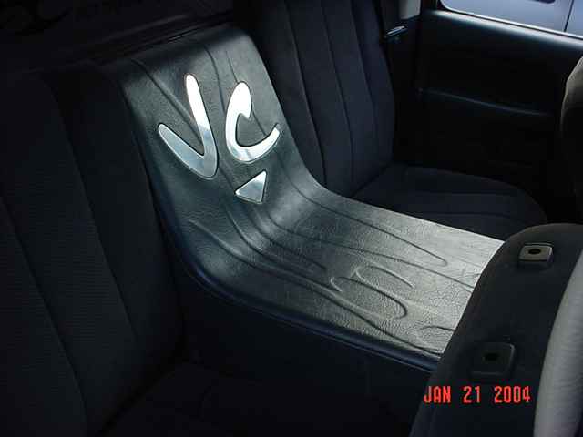 BILLET FLAMMED LIGHTER,BILLET DOOR LOCKS, TRENZ 3D FLAMMED BILLET REAR VIEW MIRROR, TRENZ 3D FLAMMED BILLET PEDALS,CUSTOM BILLET INSERTS IN THE DOORS THAT READ VERTICALLY CHALLENGED AND AC KNOBS THAT HAVE VC ETCHED IN THEM ALL BY WWW.BILLETCREATIONS.COM, CUSTON HEAD LINER IN VINYL WITH RAISED FLAME GRAPHICS CUSTOM CENTER CONSOLE FROM DASH TO REAR GLASS ,WITH 4 FOSGATE 12'S AND RAISED FLAMES WITH BILLET INSERTS ,SPLIT REAR BENCH SEAT TO MAKE 2 BUCKETS,WILL UPDATE PICS WHEN I GET TIME