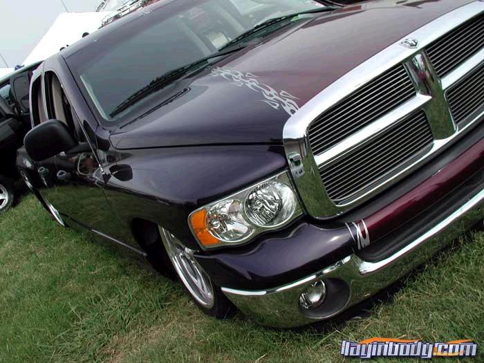 SHAVED EMBLEMS, SHAVED SIDE MOLDING, SHAVED TAILGATE HANDLE,SHAVED CAB EMBLEM, MOLDED IN ROLL PAN, BILLET GRILL, BILLET LICENSE PLATE FRAME, BILLET ANTENNA, 1% TINT VERY DARK AND VERY ILLEGAL,HID FOG LIGHTS VERY COOL WHEN THEY ARE 3 INCHES OFF THE GROUND DRIVING DOWN THE ROAD LOL, PAINTED THE TRUCK 2 COLORS MERCEDES VIOLET OFF CENTER A LITTLE ON THE PASSENGER SIDE AND BURGANDY STILL ON THE DRIVERS SIDE WITH SILVER FLAMES DOWN THE WHOLE TRUCK TO DEVIDE THE 2 COLORS, FLUSH MOUNT BED COVER ,FULL BED KIT IN VINYL WITH GRAPHICS BY MOONLIGHT CUSTOMS WILL UPDATE PICS SOON