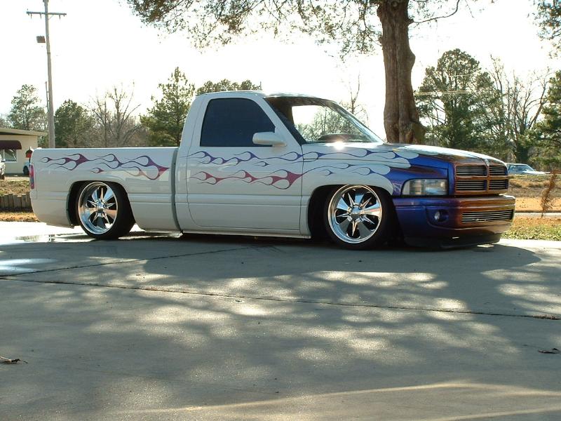 Haraquin Flames,White base with blue pearl,Shaved:handles,tailgate handle and bodyline, antenae, bed stakes, gas lid, roll pan; phantom bumber with fog lights,rhino liner.