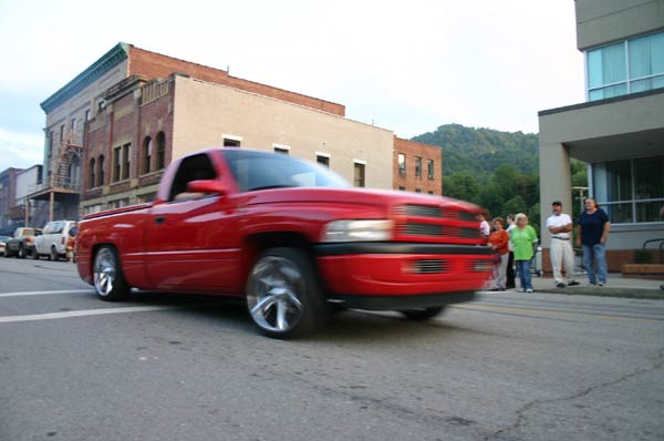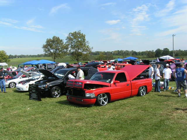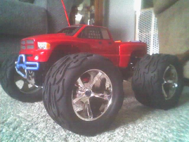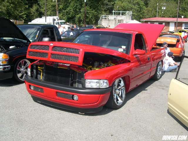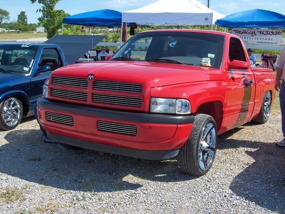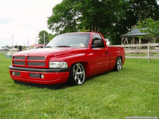 Flame red paint, patriot bed cover, euros, billet grill, fiberglass rollpan