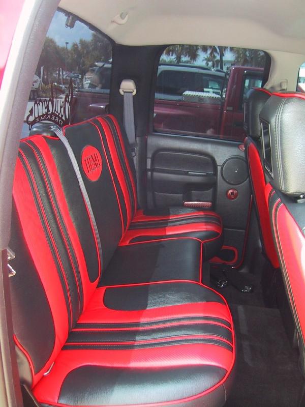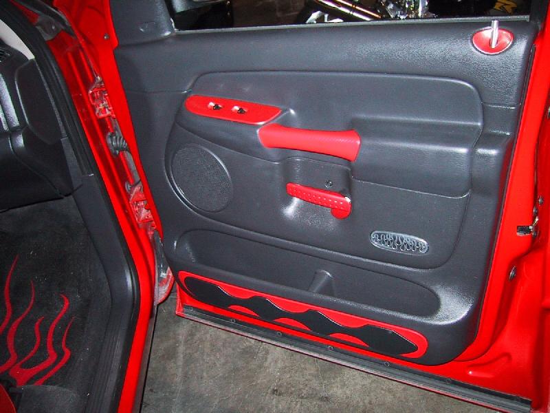Custom interior done by shamrock auto trim in miami (aka the interior specialist for 2fast 2furious. All black vinyl with red carbon fiber inserts. With custom hemi badges. Door handles and doors done. Custom dash pieces and door pieces done by phoenix imaging. Billet interior pieces. Black suede headliner.