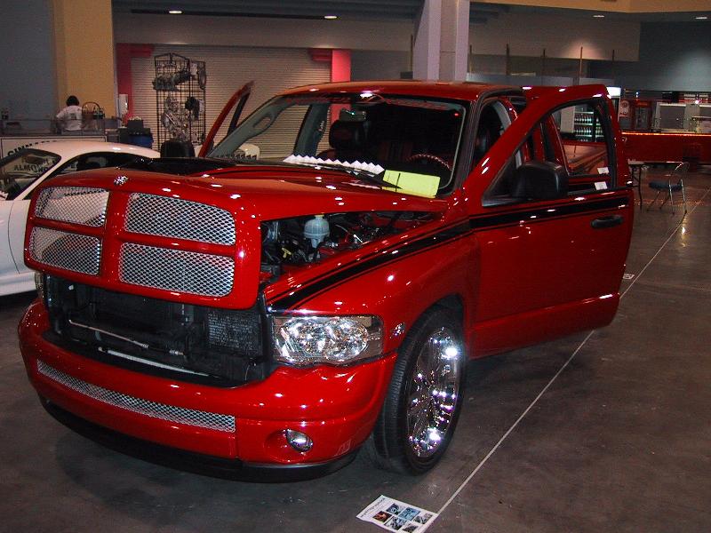 Custom paint job, red and black chameleon, srt-10 hood, krusty kustoms roll pan, lite glow leds, street scene grill upper and lower, cleared corners, gaylords lid with speedstur wing. Painted to match odds and ends. Custom flame exhaust tip. hotchkis tvs 2/4 drop with some mods done to turn it into a 3/5. painted to match taillights.