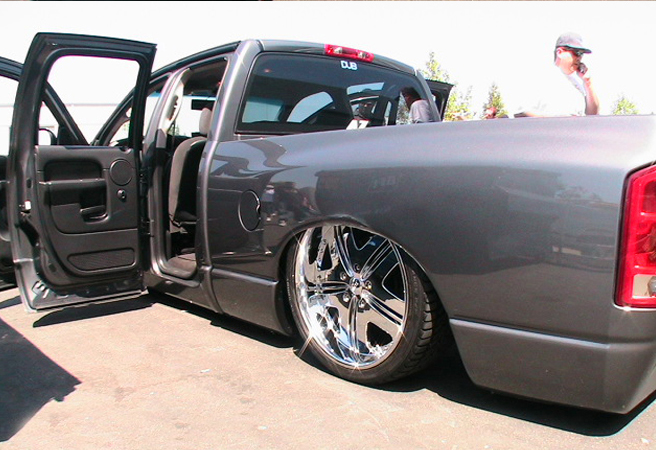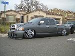 Bagged on Slam 72s. Two 7 gallon tanks. Two Air Zenith compressors and Nitrogen. JDM control arms and 2" drop spindles up front with batteries relocated behind bumper. 8" notch in back with 4 link.