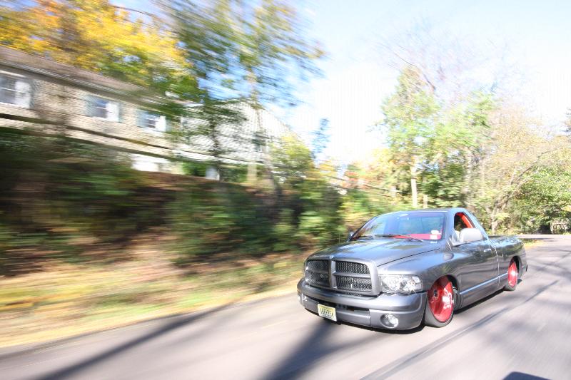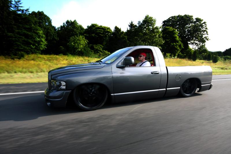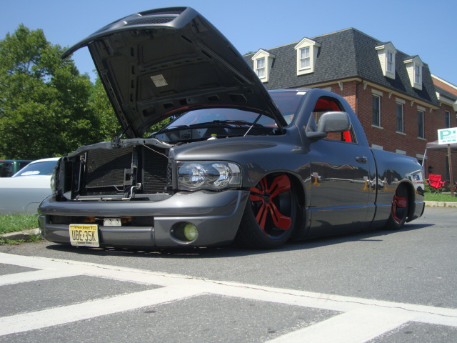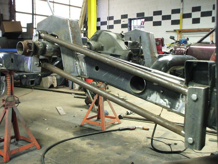 rear narrowed, parallel 4 link w/ a panhard, z'd, layin flat rail on 32" diameter wheels. (3) 3 gal tanks, 2 zeniths, (8) 1/2" airlift vavles, narrowed MMW upper tube arms & lower flat plate arms both w/ sperical bearings & ma spacers, modified tierods w/ outer heims & ma spacers